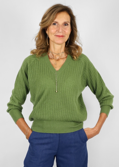 Soft as a hug, light as a breath. The Marta golf, in pure cashmere, envelops the silhouette with discreet grace, thanks to the micro perforated workmanship that plays with light and caresses the skin. The V-neck enhances femininity with elegance, while the waistband and cuffs delicately define the figure. A precious garment, designed to accompany you at all times with comfort and refined lightness.