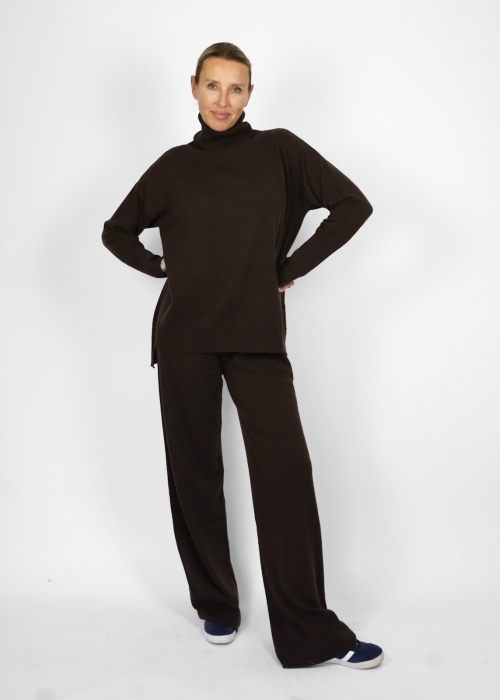 Sophisticated loungewear that celebrates comfort with style. This Toosh jumpsuit, made of fine wool and cashmere blend, consists of straight trousers with drawstring waist and a regular fit turtleneck. Simple and refined lines combine with soft and enveloping materials, for a suit that accompanies your daily moments with relaxed elegance. Perfect for free time, travel or to give you the pleasure of precious comfort, without giving up class.