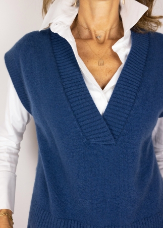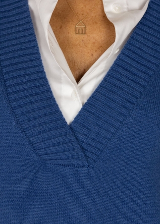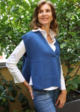 A versatile garment, with a contemporary charm. The Kappa vest, with V-neck and box fit, plays with volumes and proportions thanks to the slightly longer line on the back and the side vents that give movement. Perfect to wear over our shirts with particular sleeves, to enhance every detail with elegance and personality.