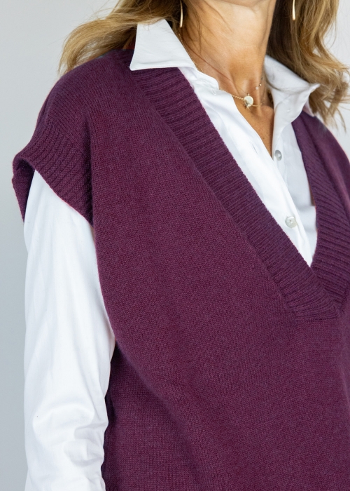 A versatile garment, with a contemporary charm. The Kappa vest, with V-neck and box fit, plays with volumes and proportions thanks to the slightly longer line on the back and the side vents that give movement. Perfect to wear over our shirts with particular sleeves, to enhance every detail with elegance and personality.