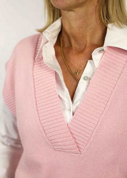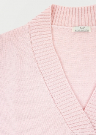 A versatile garment, with a contemporary charm. The Kappa vest, with V-neck and box fit, plays with volumes and proportions thanks to the slightly longer line on the back and the side vents that give movement. Perfect to wear over our shirts with particular sleeves, to enhance every detail with elegance and personality.