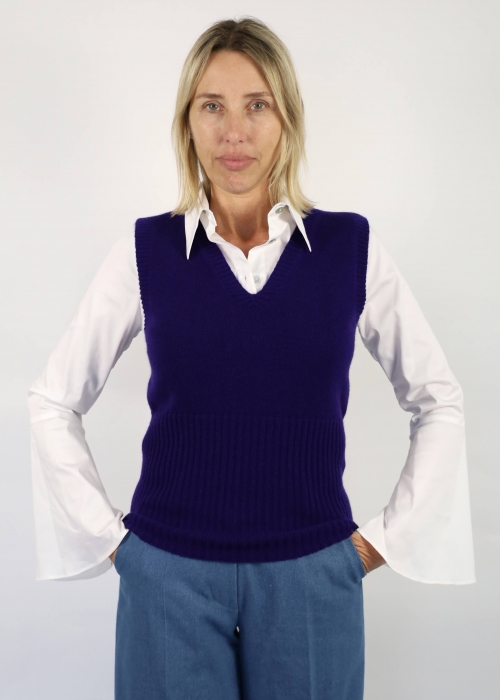 Clean lines and sculpted silhouette for the Sophia vest, designed to enhance femininity with discretion. The deep V-neckline and ultra-slim fit embrace the body with elegance, while the ribbed high-end waist defines and enhances the figure. A sophisticated garment, perfect for completing contemporary looks with a touch of essential refinement.