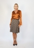 The item has an A line, suitable for any body type and is made in Brown and orange check pure wool.