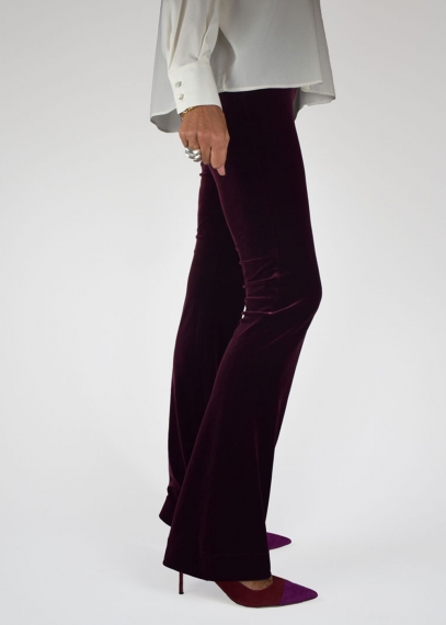 Elevate your style with our exclusive smooth velvet flared trousers. The fluid silhouette and the soft and stretch fabric give a touch of refinement without sacrificing comfort.