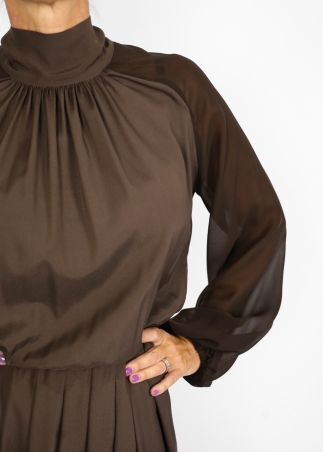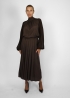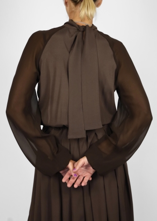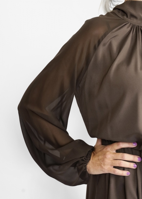 Un abito che racconta eleganza senza tempo. L’Abito Jane Toosh è realizzato in preziosa seta opaca, con delicate maniche in georgette di seta che aggiungono leggerezza e femminilità. Il collo alto con fiocco sul retro dona un dettaglio sofisticato, mentre l’elastico in vita valorizza la silhouette. La lunghezza midi lo rende perfetto per ogni occasione speciale.