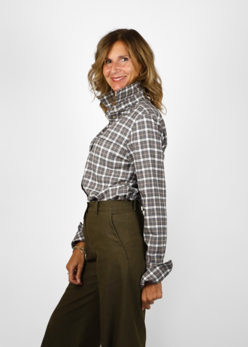 La camicia Safari Toosh reinterpreta lo stile sahariano con un tocco contemporaneo. Realizzata in morbida flanella di cotone, presenta due tasche all’altezza del seno che ne sottolineano il carattere deciso e funzionale. La fantasia check scozzese la rende calda, avvolgente e sofisticata, perfetta per affrontare la stagione fredda con personalità.