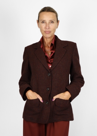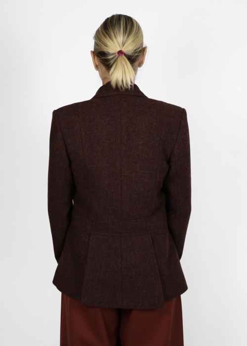 La giacca Kenya Toosh è realizzata in pregiato tessuto inglese Shetland in pura lana, che garantisce calore e comfort. Caratterizzata da un taglio monopetto con punto vita definito e tasche laterali, unisce praticità e raffinatezza. La vestibilità regolare la rende facile da indossare e versatile in ogni occasione.