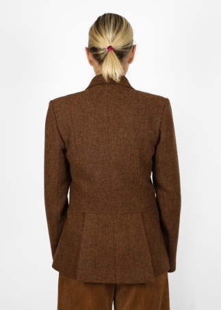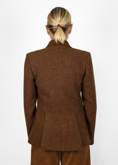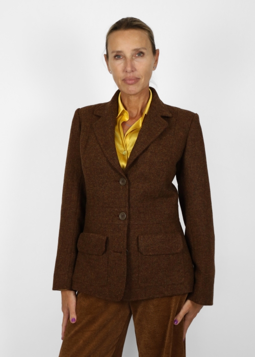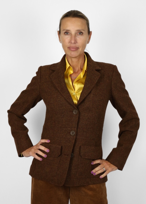 La giacca Kenya Toosh è realizzata in pregiato tessuto inglese Shetland in pura lana, che garantisce calore e comfort. Caratterizzata da un taglio monopetto con punto vita definito e tasche laterali, unisce praticità e raffinatezza. La vestibilità regolare la rende facile da indossare e versatile in ogni occasione.