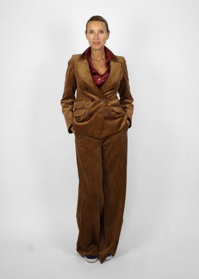 La giacca doppiopetto Toosh è un capo iconico che unisce eleganza e personalità. Realizzata in velluto a coste con 500 righe, conquista per la sua texture raffinata e il taglio sartoriale impeccabile. La linea sciancrata valorizza la silhouette, mentre le tasche con patella aggiungono praticità senza rinunciare allo stile.
