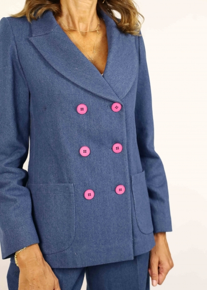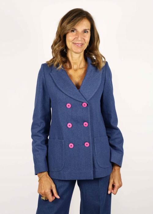 Giacca doppiopetto in tessuto denim con bottoni a contrasto