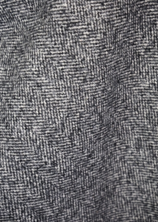 Il capo presenta una linea ad A, adatta ad ogni tipo di fisicità ed è realizzata in una lana con fantasia spigata bianco e nero.