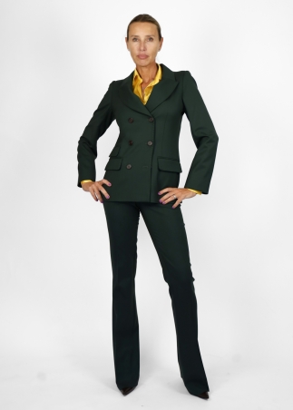 Un omaggio all’eleganza che sa reinventarsi. Il Pantalone Claude, in pregiata sallia di lana elasticizzata, avvolge la gamba con una linea aderente per poi aprirsi delicatamente a trombetta, donando slancio e armonia alla silhouette. Le taschine applicate sul davanti aggiungono un dettaglio ricercato e femminile. Perfetto da abbinare alla nostra giacca doppiopetto coordinata per creare un tailleur raffinato e contemporaneo, ma anche da interpretare in chiave più casual con una camicia o una maglia. Un capo elegante e senza tempo, pensato per chi ama distinguersi con naturalezza.